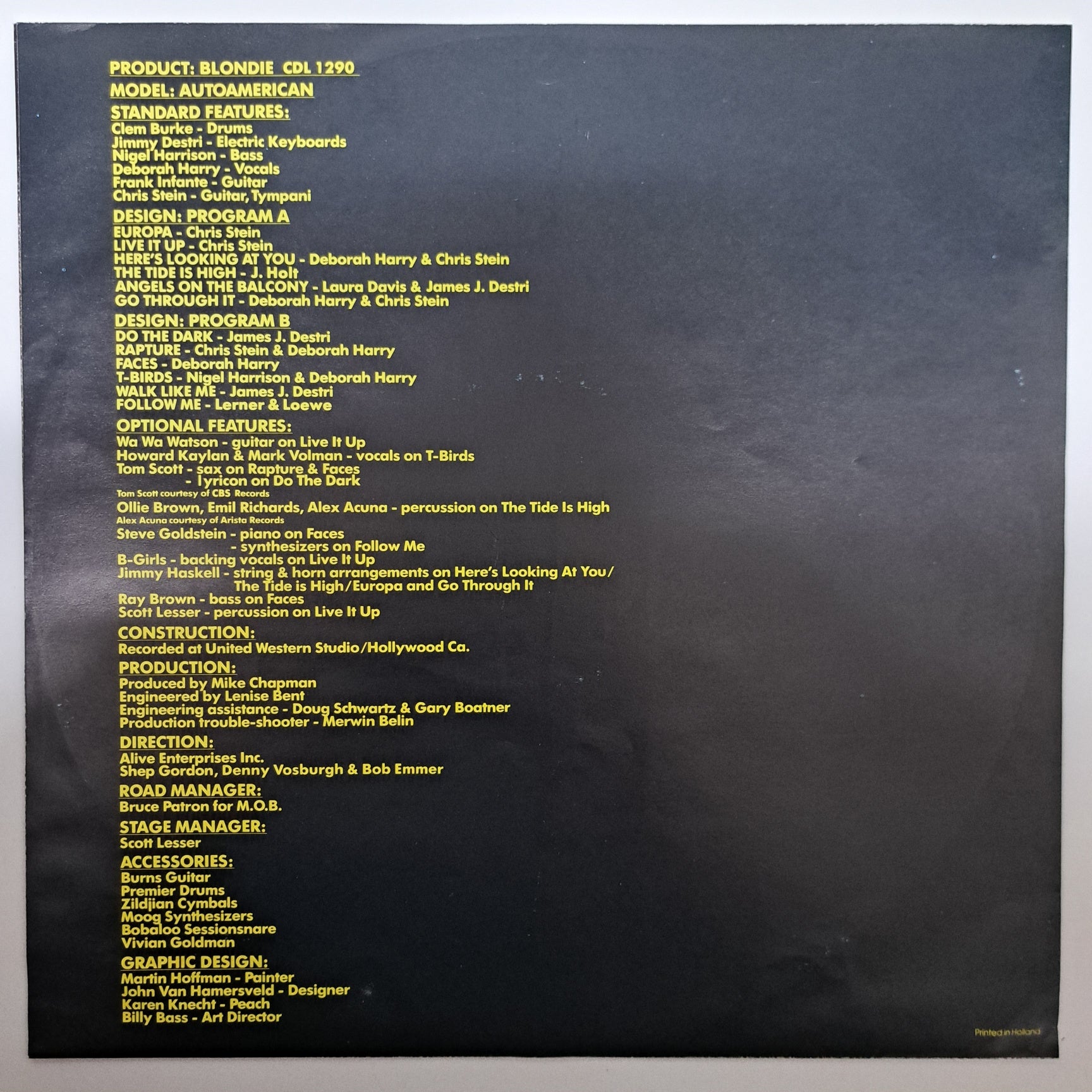 Blondie - Autoamerican (Vinyl LP 1980 UK Inner & Insert) EX/EX