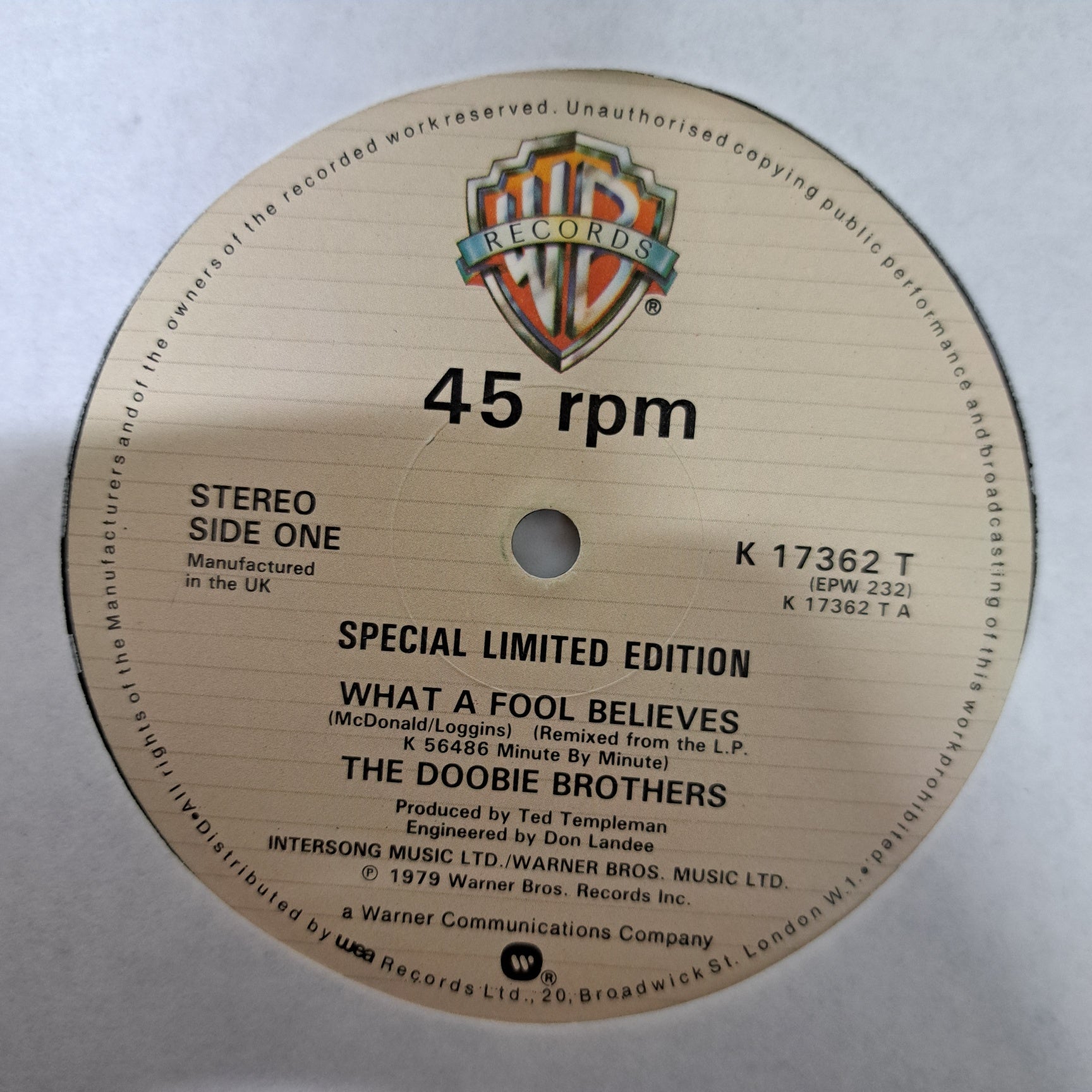 Doobie Brothers - What a Fool Believes (Vinyl 12" Limited Edition Single) NM/NM