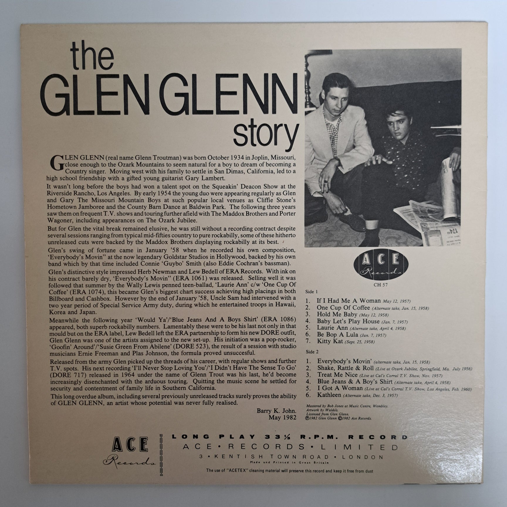 Glen Glenn - The Glen Glenn Story (1982 Ace Rockabilly Vinyl LP) NM/NM