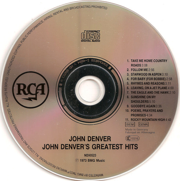 John Denver - Greatest Hits (1990 CD) NM